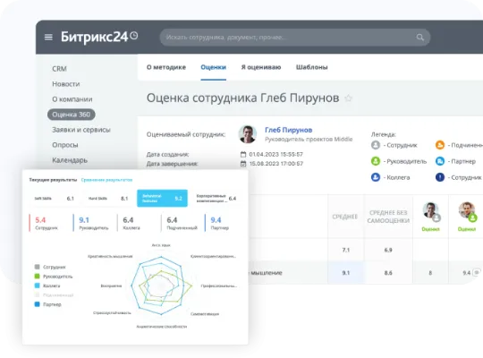 - карточки сделок, контактов и сотрудников;